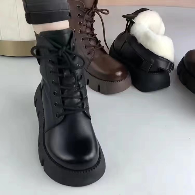 Womens Soft-leather Fleece-lined Extra-thick Insulated Snow Boots