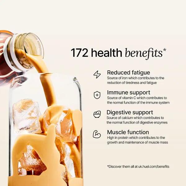 This isn't just a protein drink. This is the most convenient meal you'll ever have. Huel is perfect for when you're short on time - just shake, sip and enjoy. Formulated by nutritionists, each bottle is a 100% nutritionally complete meal, packed with: - 26 essential vitamins & minerals - 22g protein - 6g fibre - Low sugar - Gluten-free - 172 health benefits (uk.huel.com/benefits)