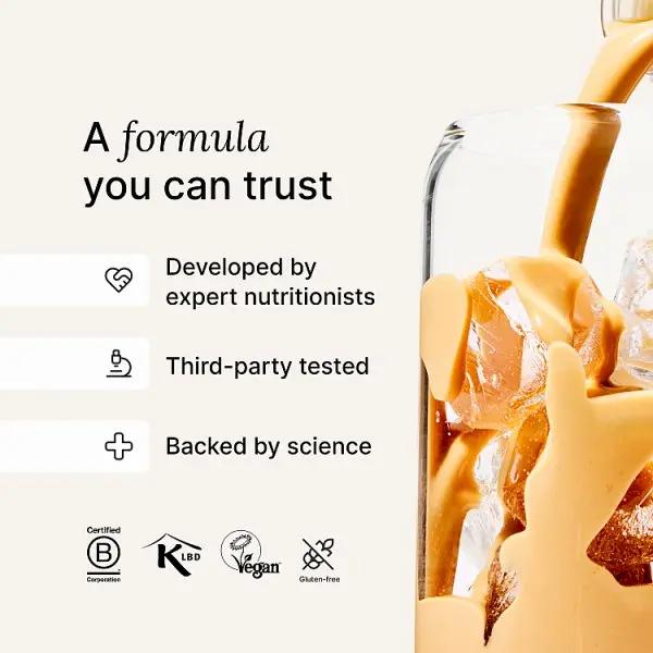 Water, Pea Protein, Tapioca Maltodextrin, Rapeseed Oil, Gluten-Free Oat Flour, Ground Flaxseed, Medium-Chain Triglyceride Powder (from Coconut), Natural Flavourings, Soluble Gluco Fibre, Micronutrient Blend*, Coconut Sugar, Hemp Seed Protein, Coffee Powder (0.3%), Emulsifier: Sunflower Lecithin, Sweetener: Steviol Glycosides, Thickener: Gellan Gum, *Micronutrient Blend: Potassium Citrate, Potassium Chloride, Calcium Carbonate, Maltodextrin, Vitamin C (as L-Ascorbic Acid), Magnesium Phosphate, Magnesium Citrate, L-Choline Bitartrate, Vitamin K2 (as Menaquinone-7), Vitamin E (as D-Alpha-Tocopheryl Acetate), Vitamin A (as Retinyl Acetate), Niacin (as Niacinamide), Vitamin D2 (Ergocalciferol), Vitamin B12 (as Cyanocobalamin), Pantothenic Acid (as Calcium-D-Pantothenate), D-Biotin, Copper Gluconate, Zinc Oxide, Vitamin B6 (as Pyridoxine Hydrochloride), Potassium Iodide, Riboflavin, Selenium Yeast, Thiamin Mononitrate, Calcium-L-Methylfolate, Chromium Picolinate