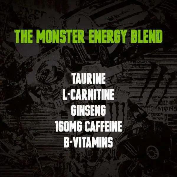 Carbonated Water, Acid (Citric Acid), Flavour Enhancer (Erythritol), Flavourings, Taurine (0.4%), Acidity Regulator (Sodium Citrates), Panax Ginseng Root Extract (0.08%), L-Carnitine L-Tartrate (0.04%), Preservatives (Sorbic Acid, Benzoic Acid), Sweeteners (Sucralose, Acesulfame K), Caffeine (0.03%), Colour (Anthocyanins), Vitamins (B3, B6, B2, B12), Guarana Seed Extract (0.002%), Inositol